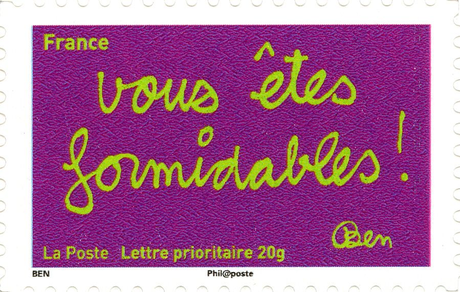 2011 - Sourire par BEN. Les images réduites en vignettes, sont cliquables pour les zoomer. France 2011 - Carnet autoadhésif. "Sourire" par l'humoriste BEN (Benjamin Vautier)(1935-). Cliquez sur l'image ci-dessous pour télécharger la feuille A4 au format PDF Date de création : 2018/06/19 # 14:12 Page lue 2364 fois