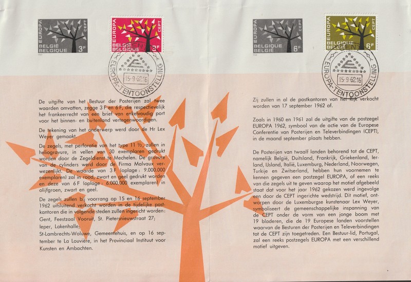 Photos - Europa 1962 FDC Belgique : (13 photos) Cliquez sur une vignette pour voir la collection Enveloppes 1er jour de Belgique EUROPA 15 Septembre 1962 (Galerie vue 1009 fois)